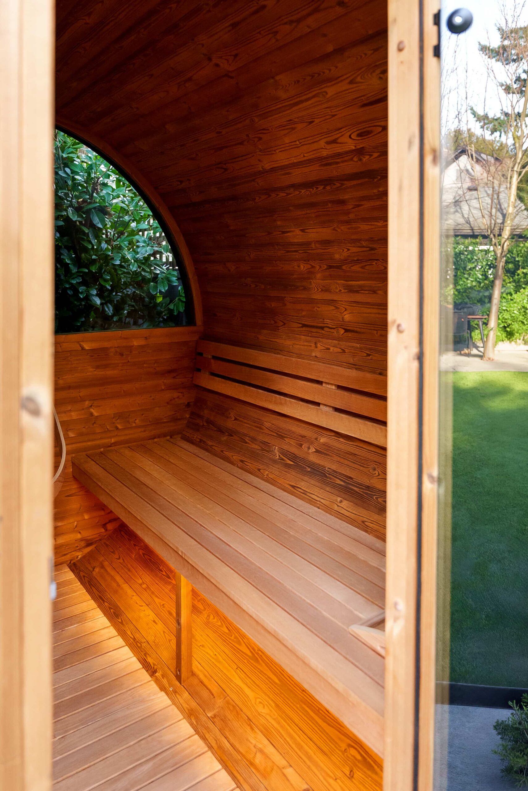 The staves used in our kits are thermally modified using only heat and steam, permanently altering the wood at a cellular level. This process reduces moisture absorption, eliminates shrinkage, and increases resistance to rot. The result is a sauna that maintains its shape, seal, and performance year after year in changing outdoor conditions.